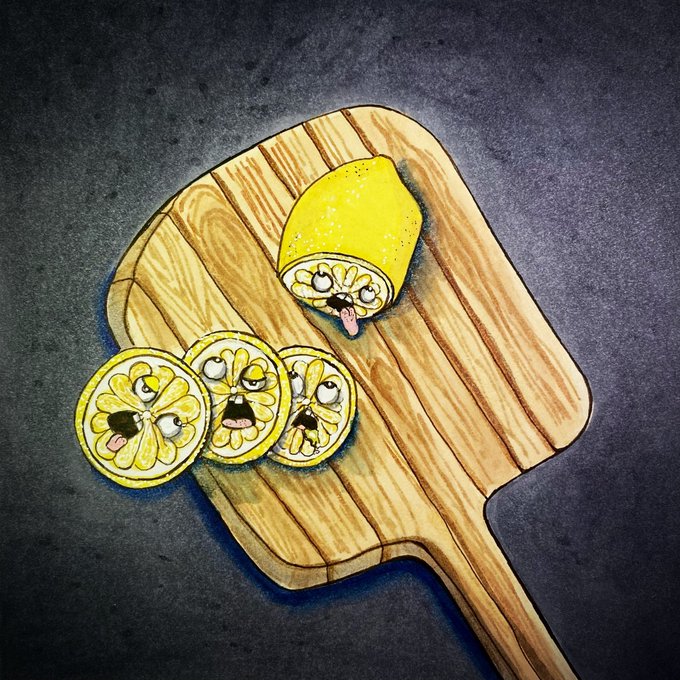 Just a few delightful slices of life to spruce up your beverage. #lemon #inktober2021 #inktober #illustration #prismacolormarkers #sakuramicron #zombie #badproduce #sliceoflife 🔪