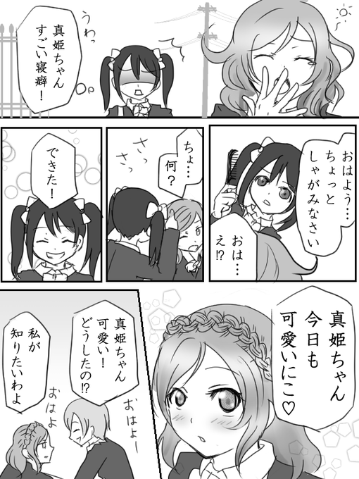 123 196 躍動感あふれる寝癖がついてしまった西木野の髪を手入れする矢澤漫画です。 #にこまきはいいぞ 16/01/19 22:09