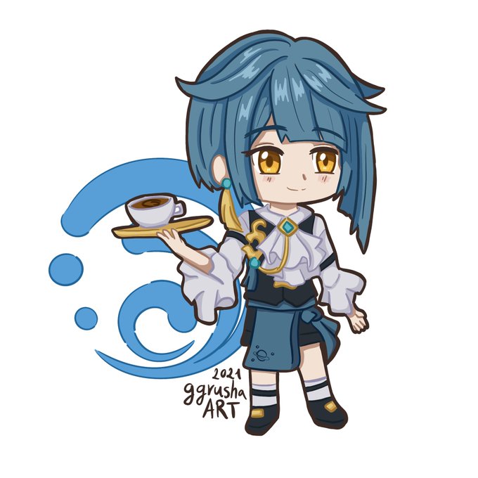 Day 2. Suit - Xingqiu 💦💦💦 My first 4star character 💙 I want to see the Cinggiu-waiter skin in the game! #GenshinImpact #Inktober #Xingqiu