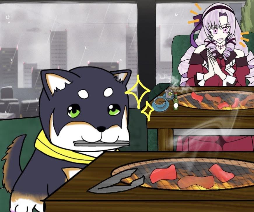 しばちゃとサロメ嬢、焼肉屋にて #しばのドッグタグ #サロメ百万展 twitter.com/BlackShiba_c…