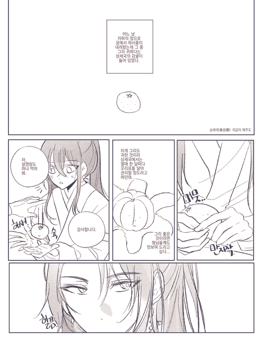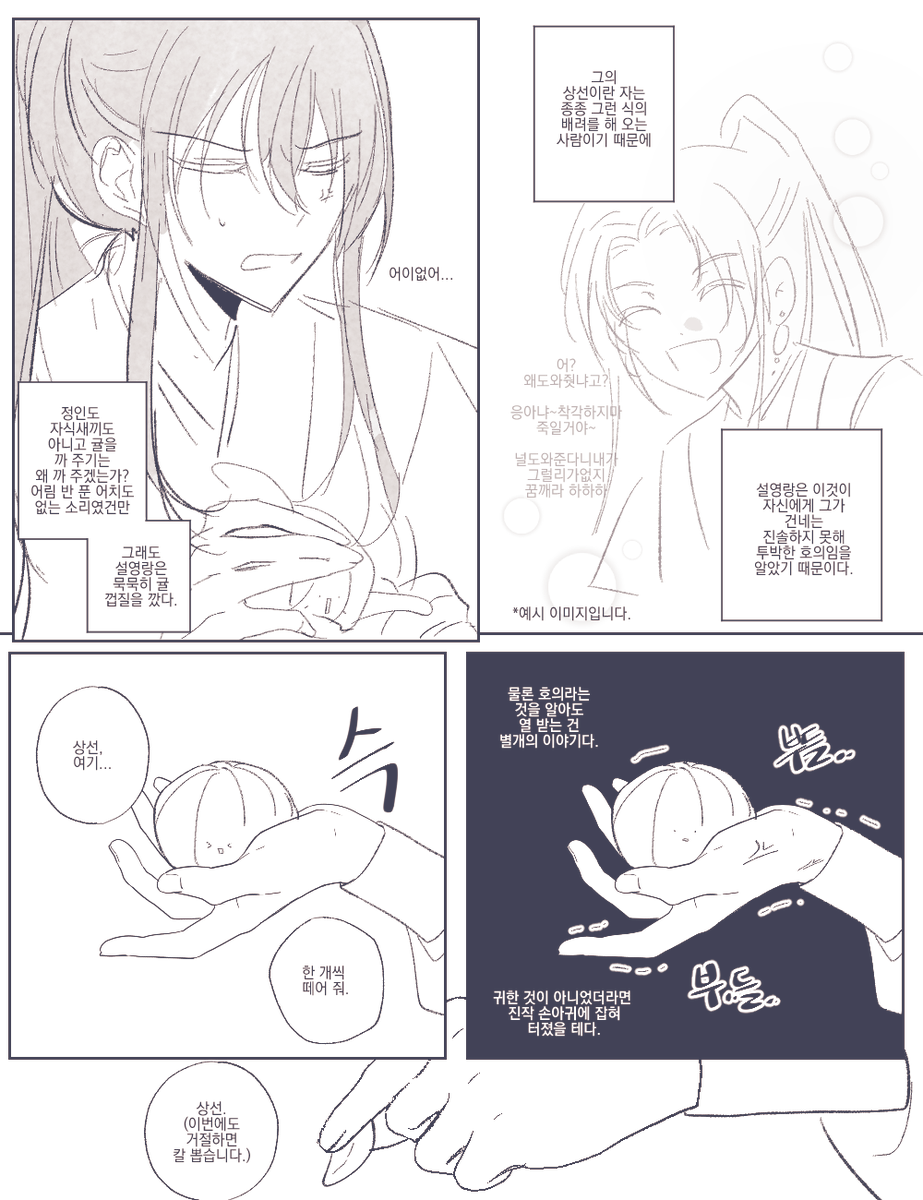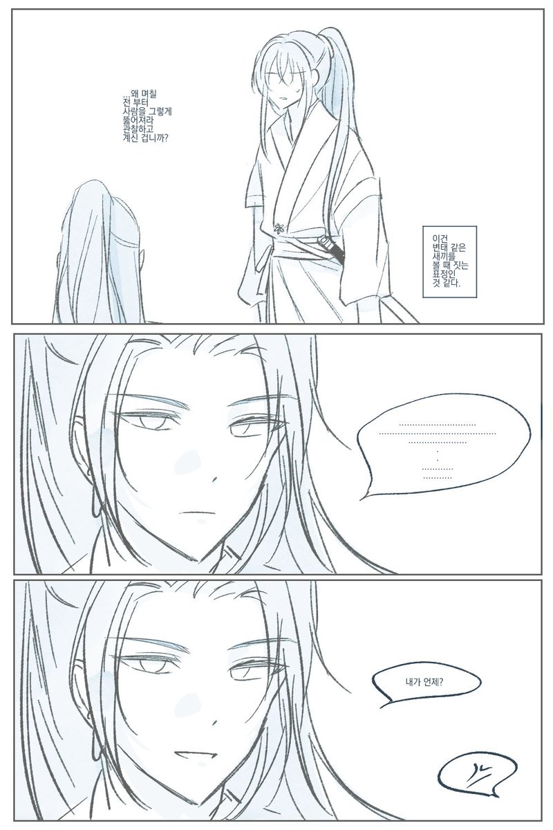 악몽이라도 꾼 거야? 엄청 끙끙대던데. 그건 잘 모르겠고 꿈에서 상선이 나오셨습니다 아 나때문에?