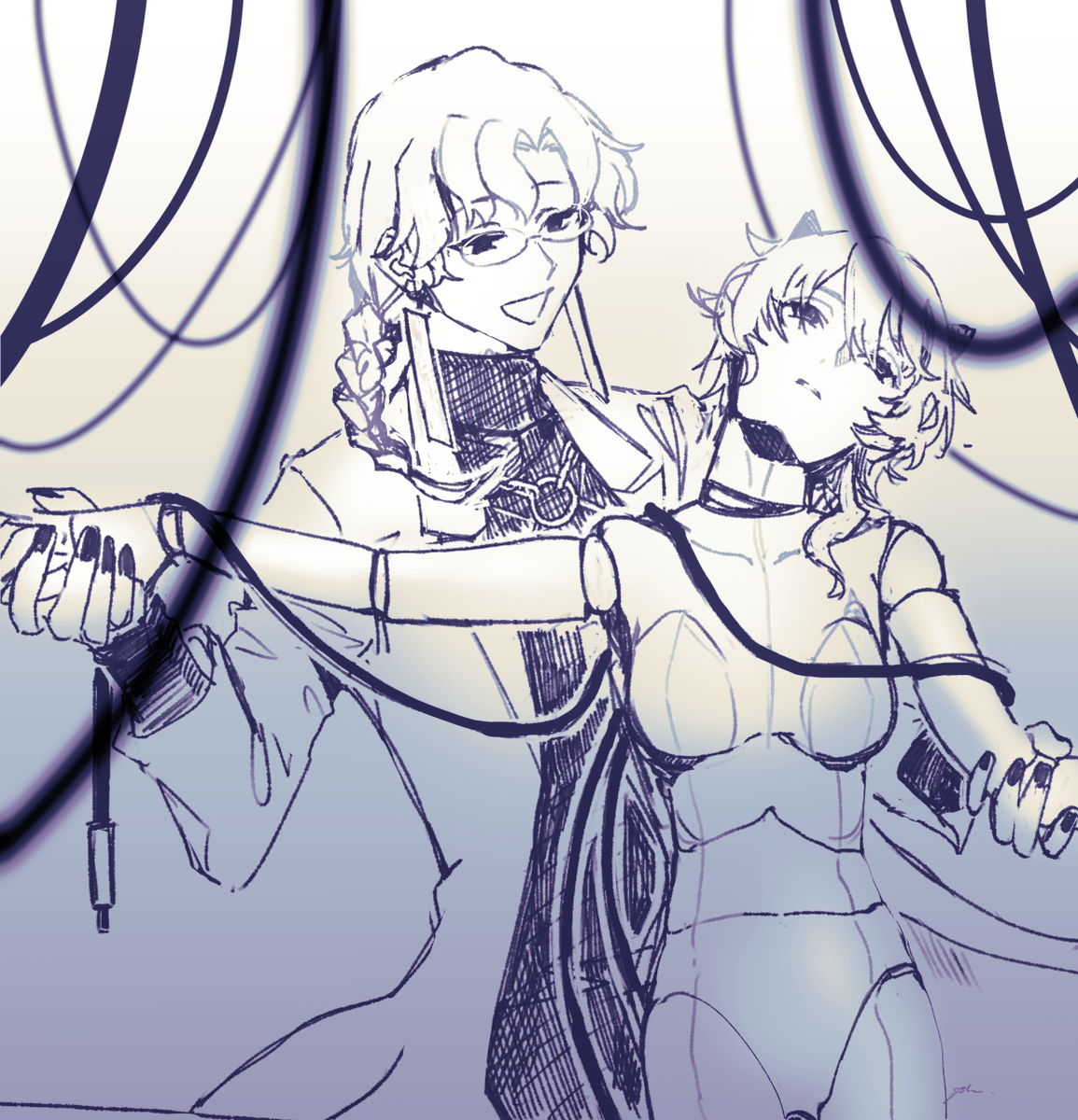 小唄さんと沙々騎さん(とそれぞれのお相手) TRPGセッションでご一緒したにしさんのキャラクターがことごとく大好き……いつもありがとうございます……とお渡しした絵でした。公開許可いただきました🌸 poipiku.com/1331777/832705…