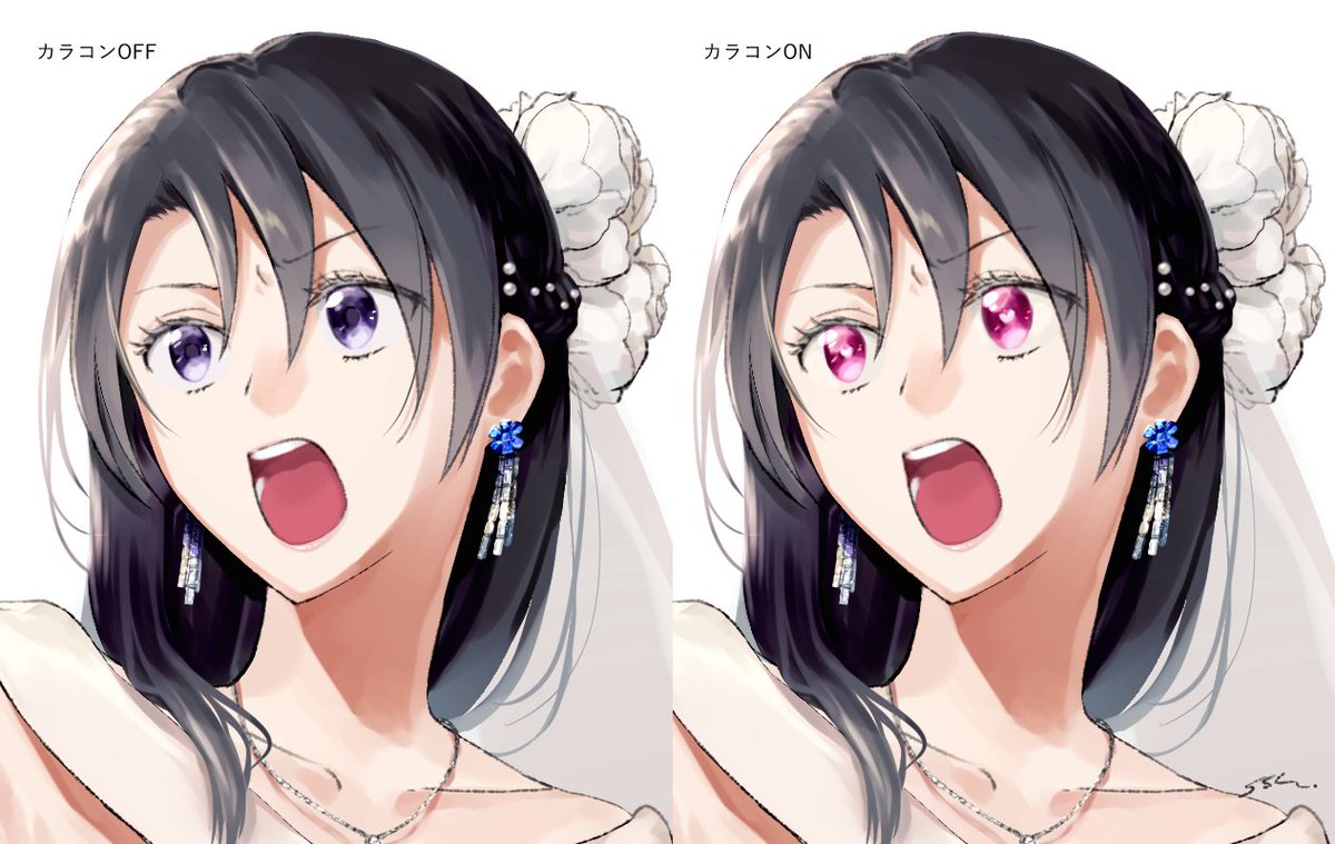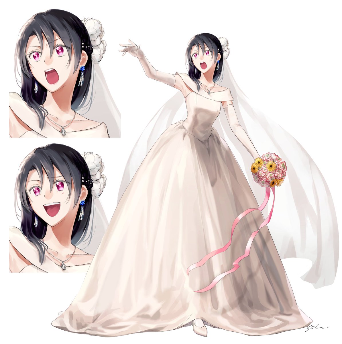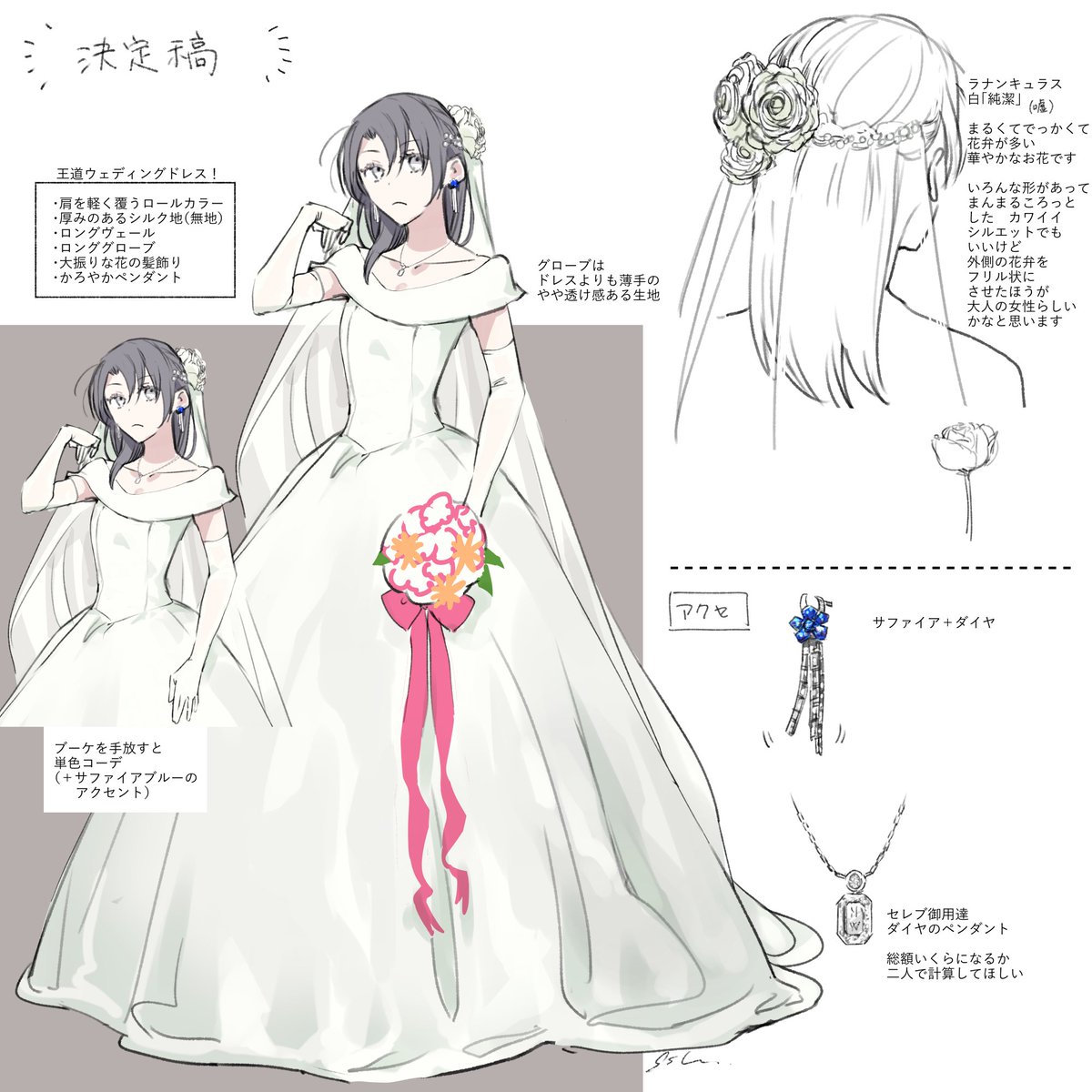 CoC『SHOTGUN KIXXING MARRIAGE』曳田小唄さん(PLにしさん)の立ち絵イラスト・ドレスデザインをお手伝いさせていただきました! 許可をいただいてイラストとデザイン案の一部をアップします。同卓の柳二束くん(PLシーツさん)と手が重なります🎀 poipiku.com/1331777/831636…