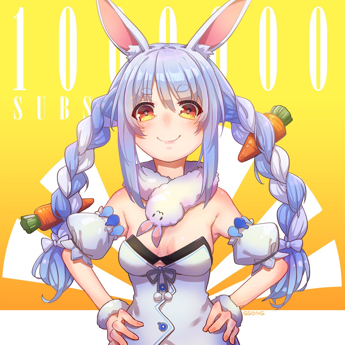 🥕🐰100万のウサギだぁ🐰🥕 🎊🎉!!!!!!!!!!🎊🎉 Congratulation to Pekora for reaching 1mil subs on Youtube~~ \>w</!! #ぺこらーと #一日一絵 (29/30) #adrawingaday (29/30)