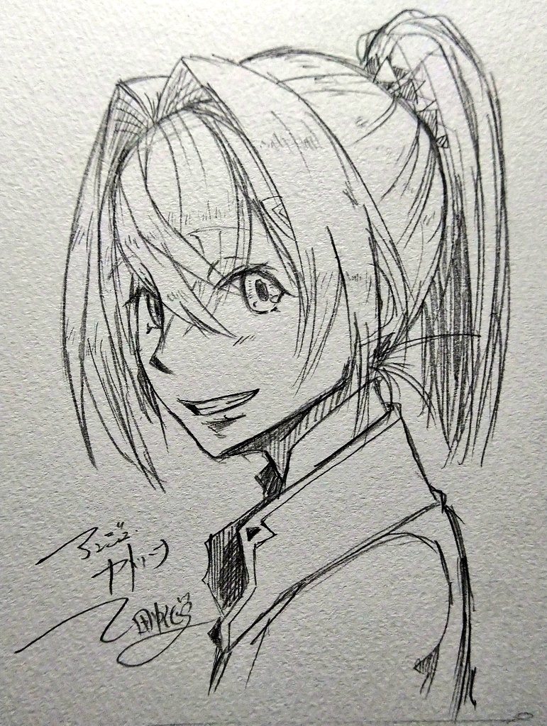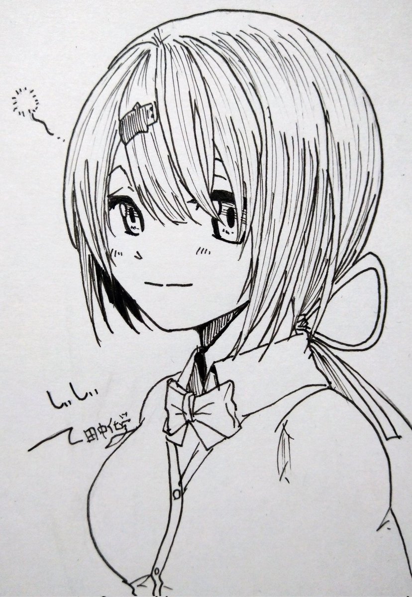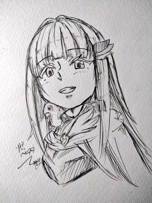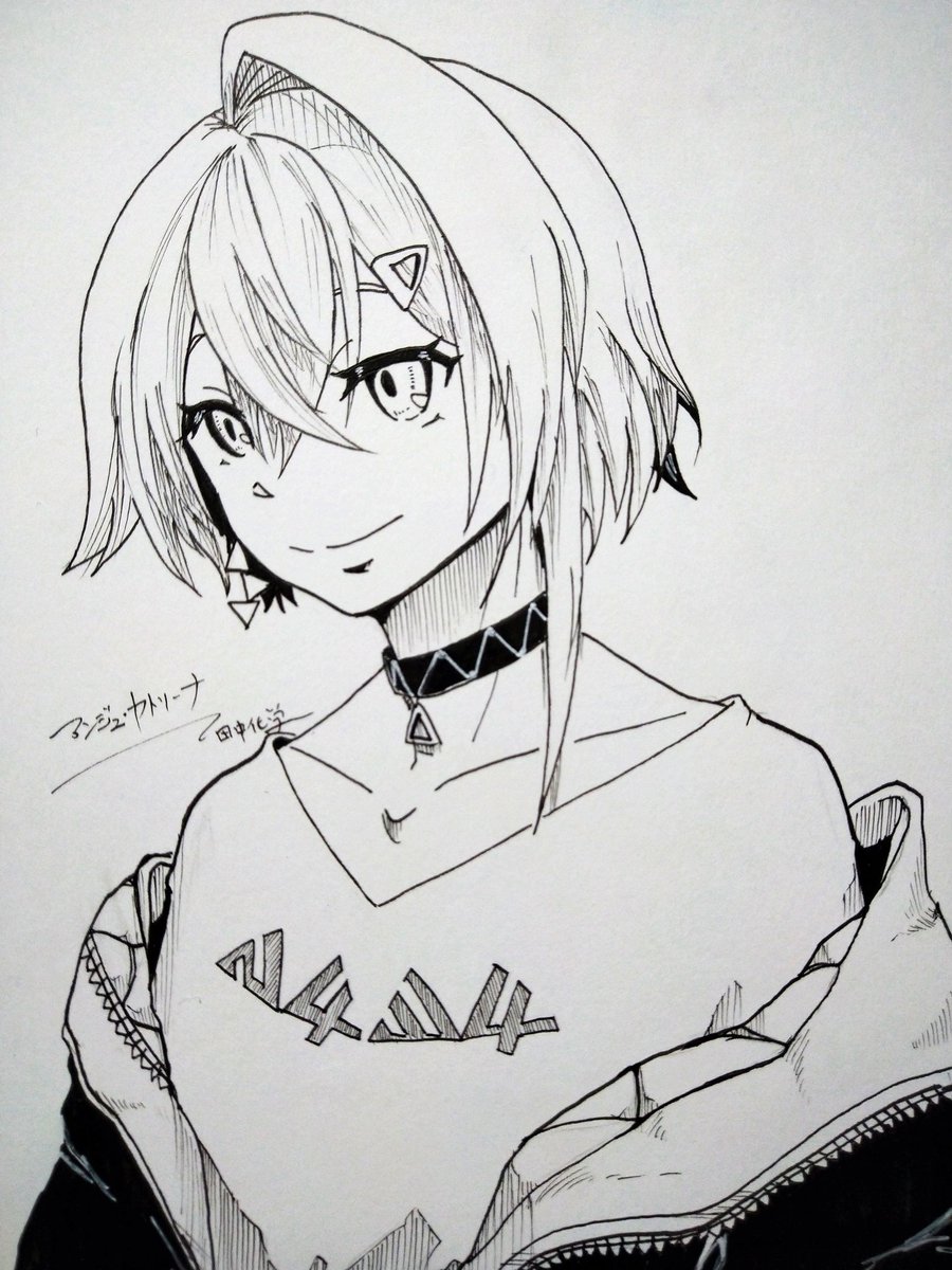 #絵ンジュ #アンジュ新衣装 モノクロやけど完成! 下描きよりかなり小顔にしてバランスとってみた。 ううーん……KAWAII