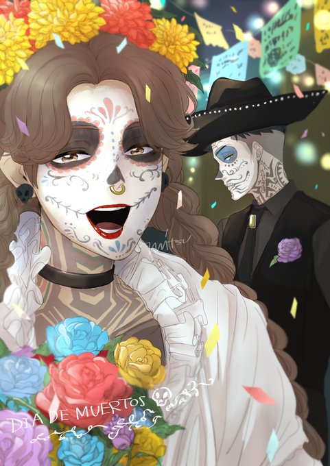 50 185 美術部のハロウィンのイラストを描くつもりだった…飛び越えて死者の日になってしまった…(でもタグ付けちゃう… #フォトナ美術部 22/10/29 18:31