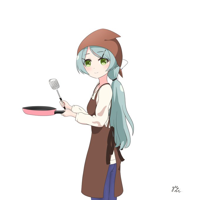 お題箱で〈エプロンと三角巾をつけてフライパンとフライ返しを持って振り返ってる紅巴ちゃん〉といただき、描かせていただきました! 長え前髪はピンで留めて後ろ髪も縛ってもらいました😉(紅巴たむに見えるかな…) 無背景ですみません🙇💦 #アサルトリリィ_FA #土岐紅巴