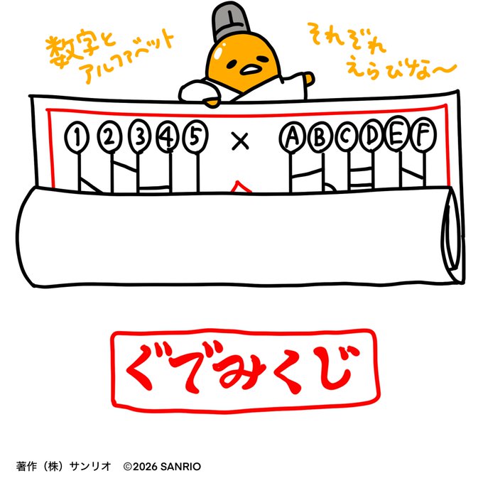 384 2358 ぐでみくじ〜数字とアルファベットそれぞれ選びな〜 26/01/08 10:00