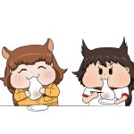 おもちを喰らう、もちもちぷにぷにほっぺの磯辺ノリスちゃんとツチヤマリスちゃんです 改めて今年もよろしくお願い致します。