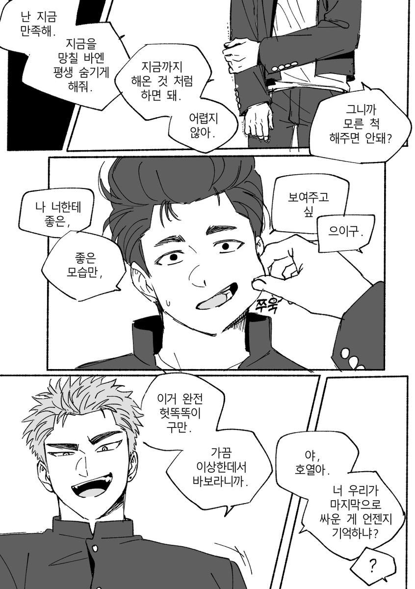 호열백호 연애 후 첫 싸움의 원인은 양호열이 여전히 뭔가를 숨기고 참는 게 빤히 보여서 너 나한테 뭐 숨기냐
