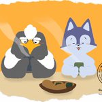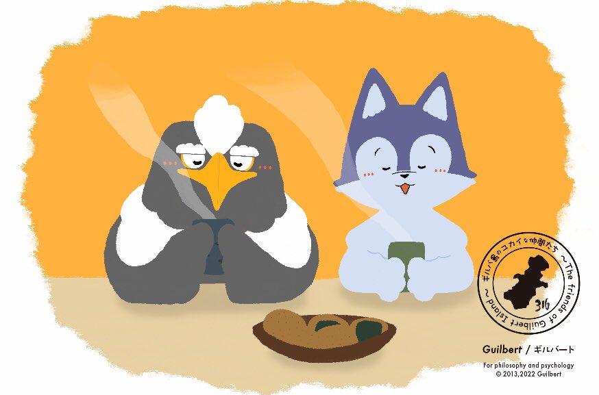 316『ひといき』 #イラスト好きな人とつながりたい #絵描きさんと繫がりたい #イラスト #ギルバ島のユカイな仲間たち #いいねかRTで気になった人フォローする #絵描き人 バーンです😀 今日はウーフの家でおせんべいパーティをしています! 寒い日のお茶はほっとするー😌