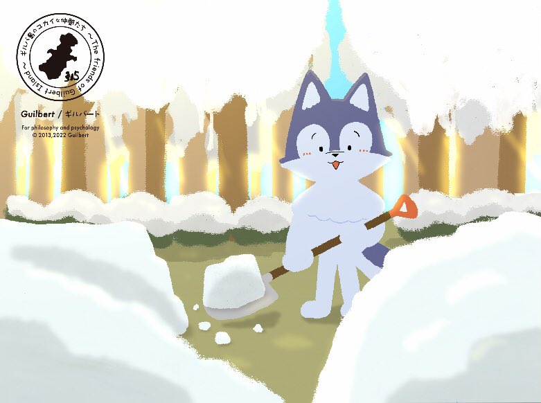 315『雪かき』 #イラスト好きな人とつながりたい #絵描きさんと繫がりたい #イラスト #ギルバ島のユカイな仲間たち #いいねかRTで気になった人フォローする #絵描き人 ウーフです😀 今日は雪かきをしています! やっと地面が見えました😄 今日は良いお天気なのですぐ溶けるかも?