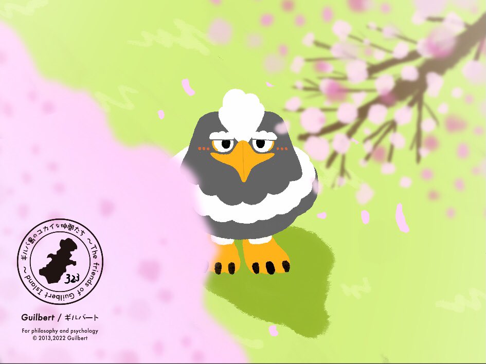 323『満開だ!』 #イラスト好きな人とつながりたい #絵描きさんと繫がりたい #イラスト #ギルバ島のユカイな仲間たち #いいねかRTで気になった人フォローする #絵描き人 バーンです😀 この間の桜の木を見に来たら満開になっていました! うーん、桜のいい香り😌