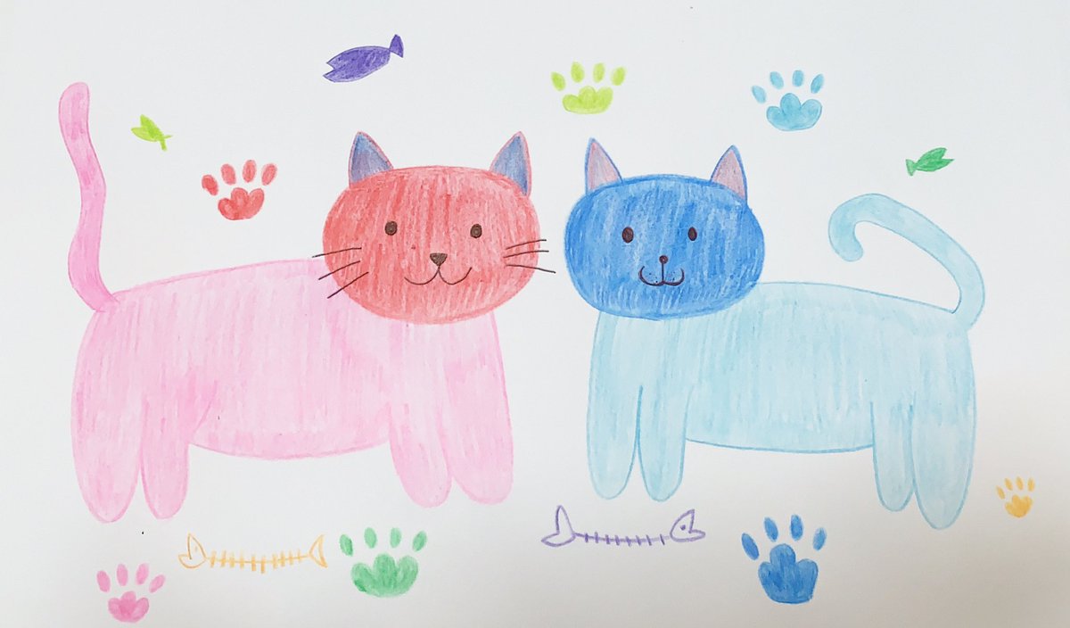 私はただ、リオちゃんに可愛いネコ描いてあげたかっただけなの🥹 一応、レイちゃんネコ🐱とリオちゃんネコ🐱です。 #おめシス #おめシスはいいぞ
