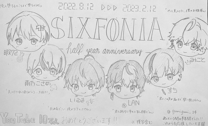 2 22 シクフォニ結成半年、YouTube登録者10万人、おめでとうございます✨ 素敵なグループに出会えて幸せです これからも応援しています!!大好きです🎼 (絵は模写を含みます) #シクフォニ #シクスフォト #72あーと #こさめの目 #いるまにあふぁみりー #らんらんかんしちゅう #すちくんおきて #みことの民 23/02/12 00:11