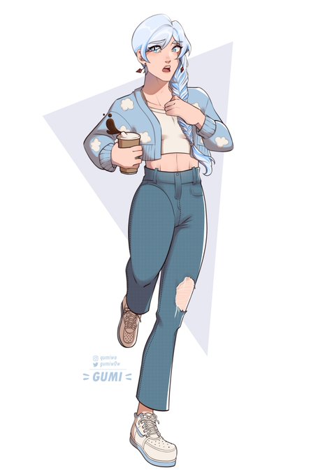 bees modern college au 😳 started as a flat coloured concept sketch, but uuuh, I'm not about to complain over some extra lighting _ #RWBY #rwbyfanart #BlakeBelladonna #YangXiaoLong #bumbleby
