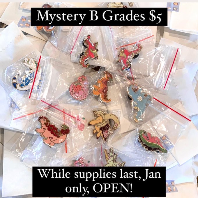 If you’ve ever wanted a pin from me, now is the time! ✨ snag some cheap mystery b grade pins or discounted regular pins! #paleoart #dinosaur #enamelpin