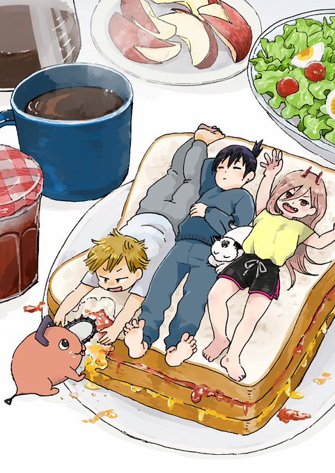 70 339 早川家と朝食をテーマに描きました! #チェンソーマンファンアート投稿 20/11/30 21:48