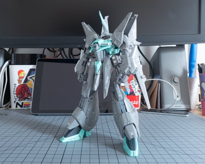 re/100 bawoo progress respect to @takumi0917 for the color scheme! ちょっとミクグリーンに少し似ていますか?😅 #ガンプラの画像を貼るとRTされると聞いて #GUNSTA #ガンプラ