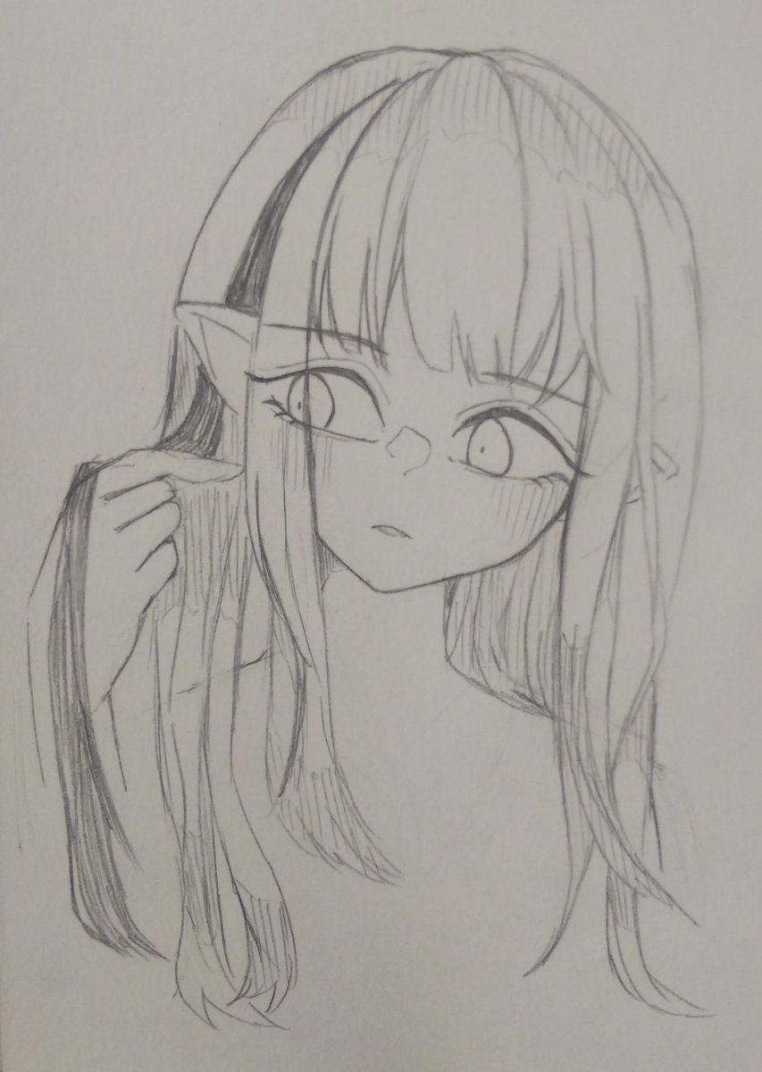 たまには違う画風 もうちょっと肌の色明るくすればよかった 線画もアナログ読み込みにしたから、もうちょっと明暗分けようかや 練習だから出癖のエルフ耳女の子 お目目と唇はトゥルトゥルでお気に入り😍 #イラスト #イラスト好きさんと繋がりたい #絵描きさんと繋がりたい #練習 #出癖 #落書き