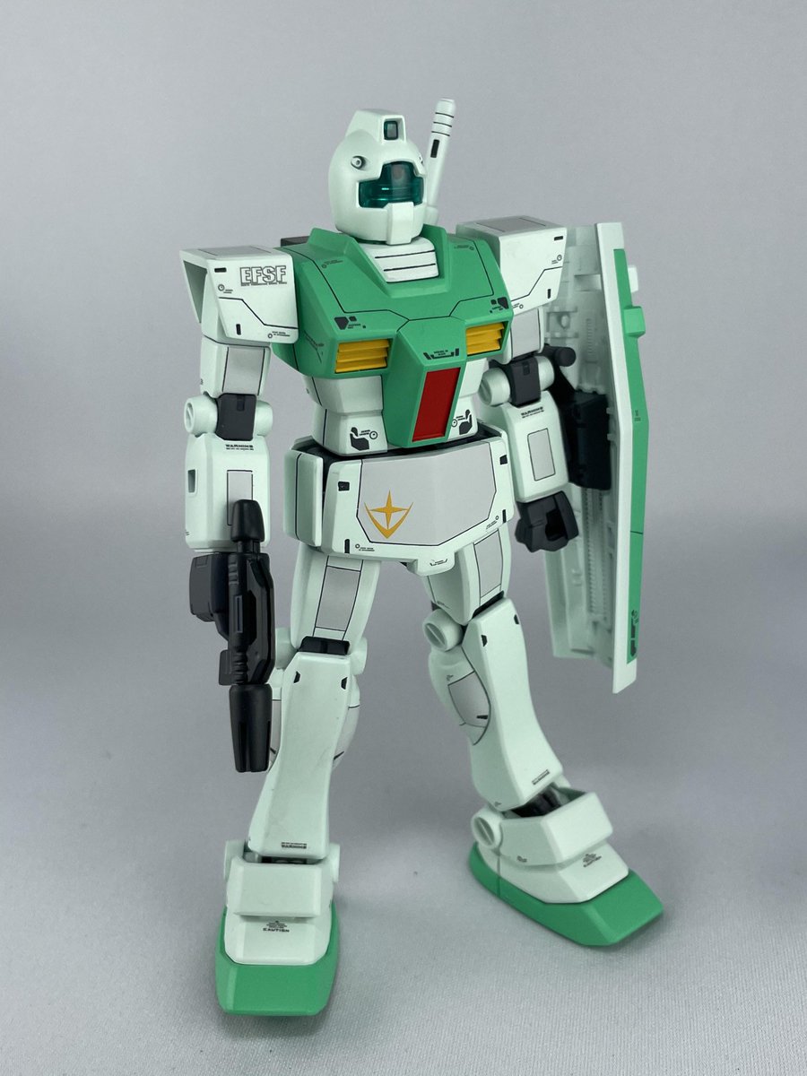 RGM-79 ジムをカラーリングを変更して製作! 緑色で使用したのはガイアノーツさんの「エメラルドグリーン」 とても鮮やかなパステル調の緑色 ジェガンなどの塗装に使うのも相性が良いと思います #ジム #ガンダム #ガンプラ #ガンプラの画像貼るとRTされると聞いて #ガンプラ好きと繋がりたい
