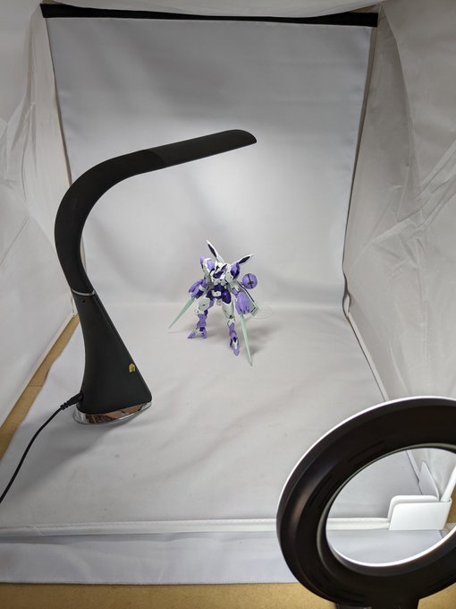 ガンプラをかっこよく撮りたいと悩んでたけど、撮影のライトを上からと横からの2灯にして劇的に良くなった プロの方いわく、陰影をつけて立体感だすとかっこよく撮影できると あ、べギルベウ完成したのでよろしければRT&いいねおねがいします(_ _) #ガンプラの画像貼るとRTされると聞いて