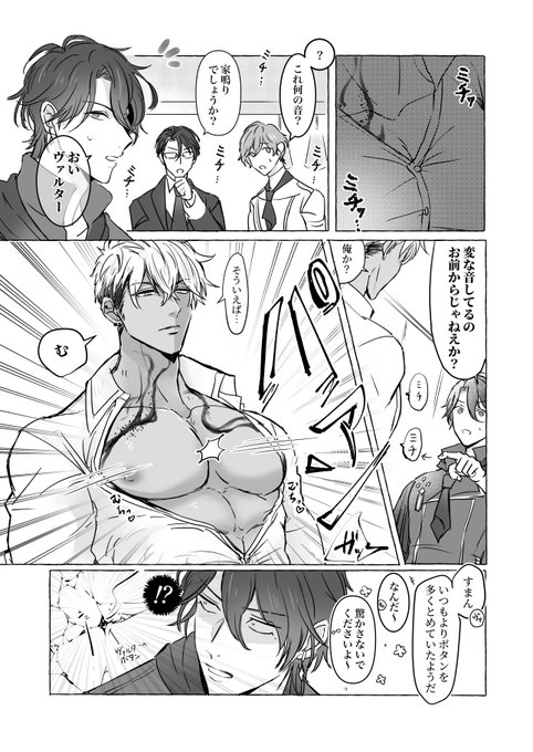 お題箱よりワイシャツのボタンが弾け飛ぶヴァルターです。お構いありがとうございました! #ゆめくろFA
