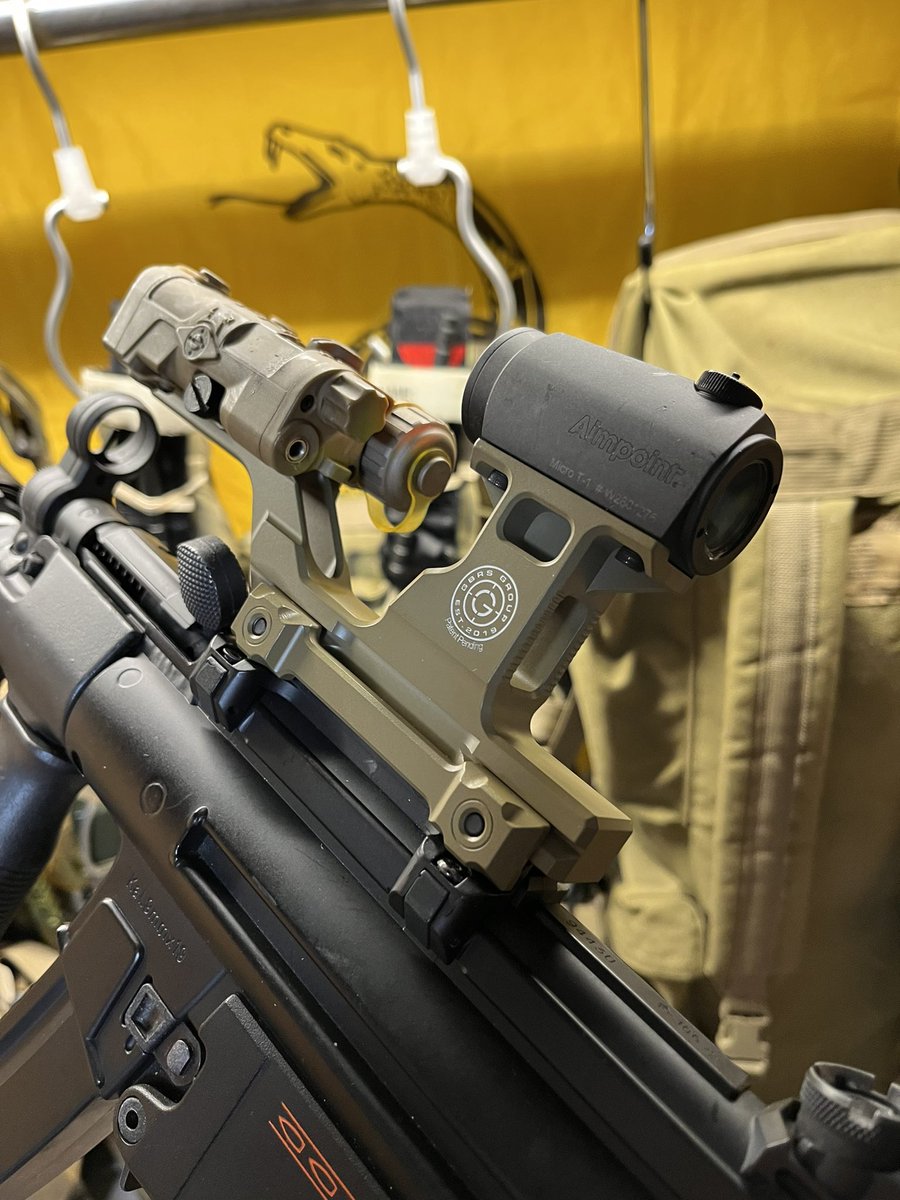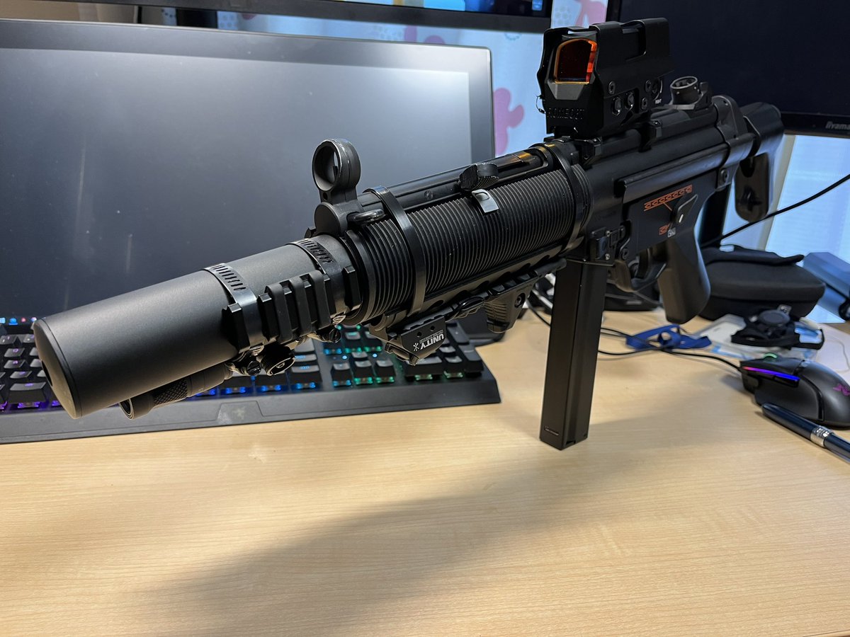 噂のハイドラマウント買いました👌 これ、MP5に合うだろうなって思ってたけど、予想以上に似合っててよき。ボルトハンドルにも干渉しないし