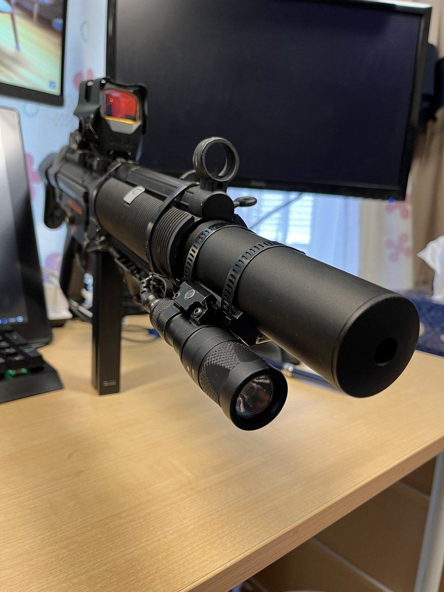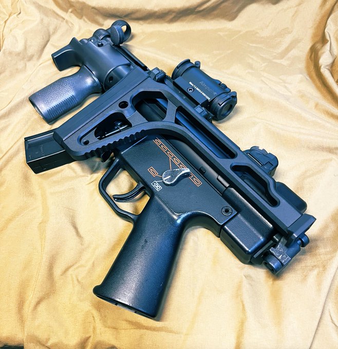 21 52 イマドキの武装ギャルJKが通学カバンに入れてそうなMP5Kを組めました。ちなみに彼女達は片手でテキトーにばら撒くのでフォールディングストックもダットサイトもフォアグリップも正直使われないでほしい() 22/12/19 19:56