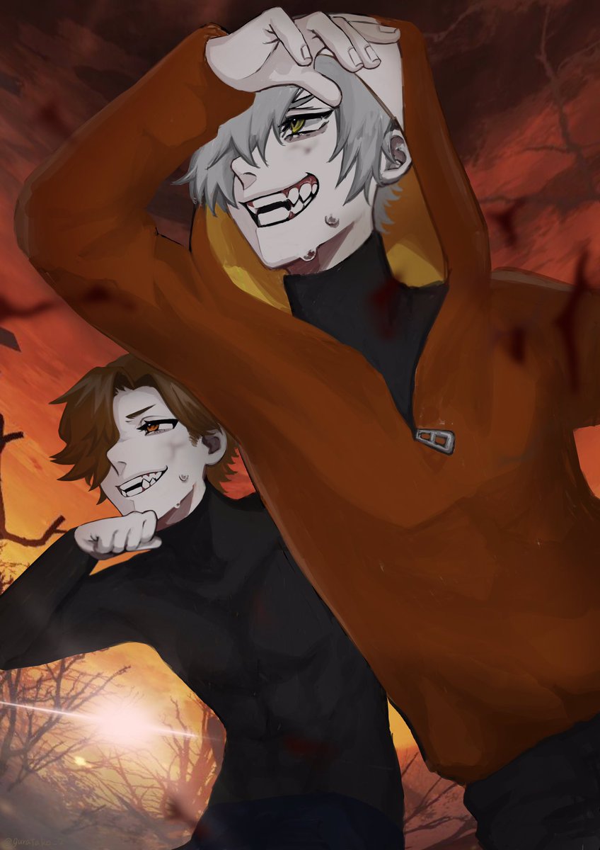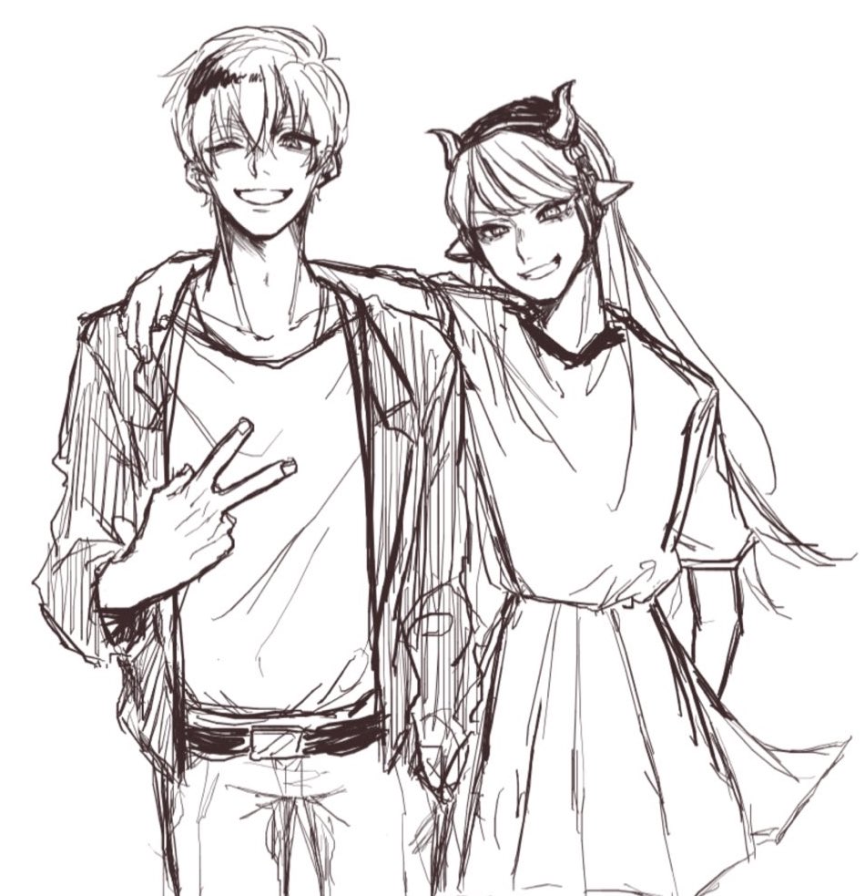 お互いのこと好きじゃない感じが好きって絵。 #さょちゃんの絵 🔪🩸 #くーやーと ☂🥒