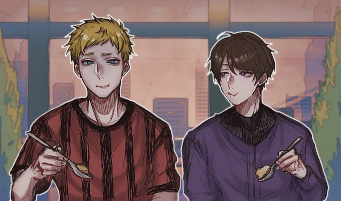 1 61 お互いのこと好きじゃない感じが好きって絵。 #さょちゃんの絵 🔪🩸 #くーやーと ☂🥒 23/01/04 18:43