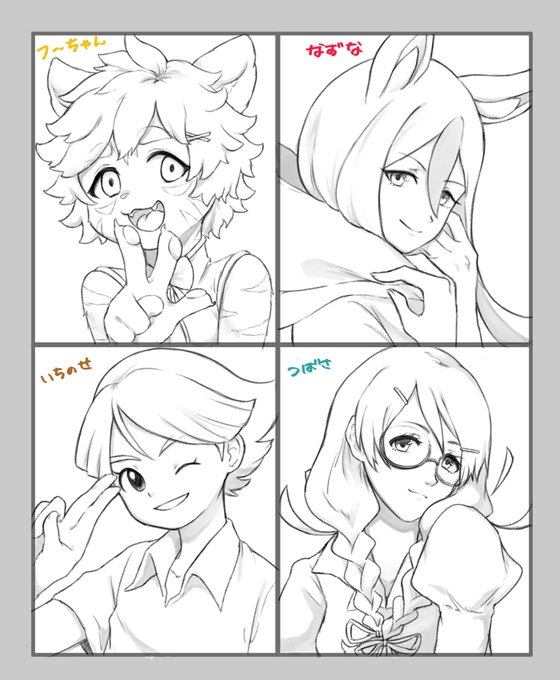 リプきたキャラの顔だけ描くやつ‼️色塗り始めたらあと5ヶ月ぐらいかかるから白黒で失礼いたす