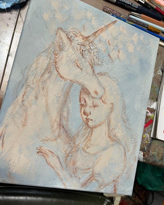新たな絵を描き始めました。 さてどうなるやら、、、 #アクリル画 #ユニコーン