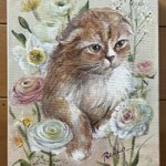 ニャンニャンニャンの日と言う事で、 我が家の愛猫、スコティッシュのゴルたんを春の花と一緒に描いてみました。 写真では微妙な色は出にくい… #猫の日 #猫の絵 #我が家の愛猫