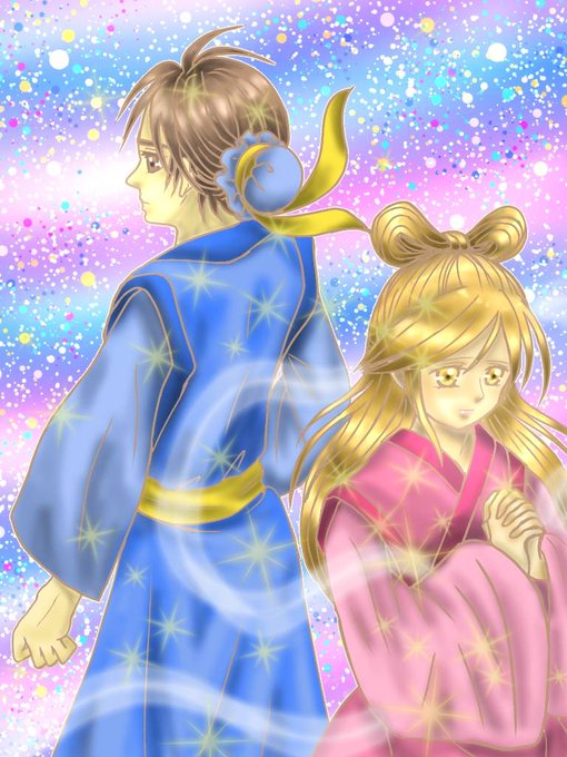 七夕にちなんで描きました😀 アイビスペイントの機能が面白くて、ノリノリでキラキラ入れまくっちゃいました~😅 #イラスト #アイビスペイント #七夕 #織姫と彦星