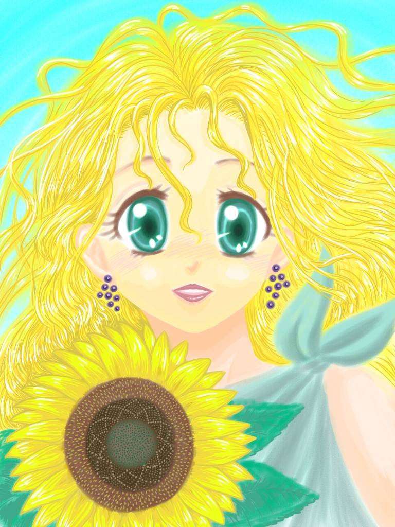 1 5 明るい色を重ね塗りしたい気分で描きましたー! #アイビスペイント #イラスト #ひまわり #晩夏 #金髪碧眼 21/09/15 21:27