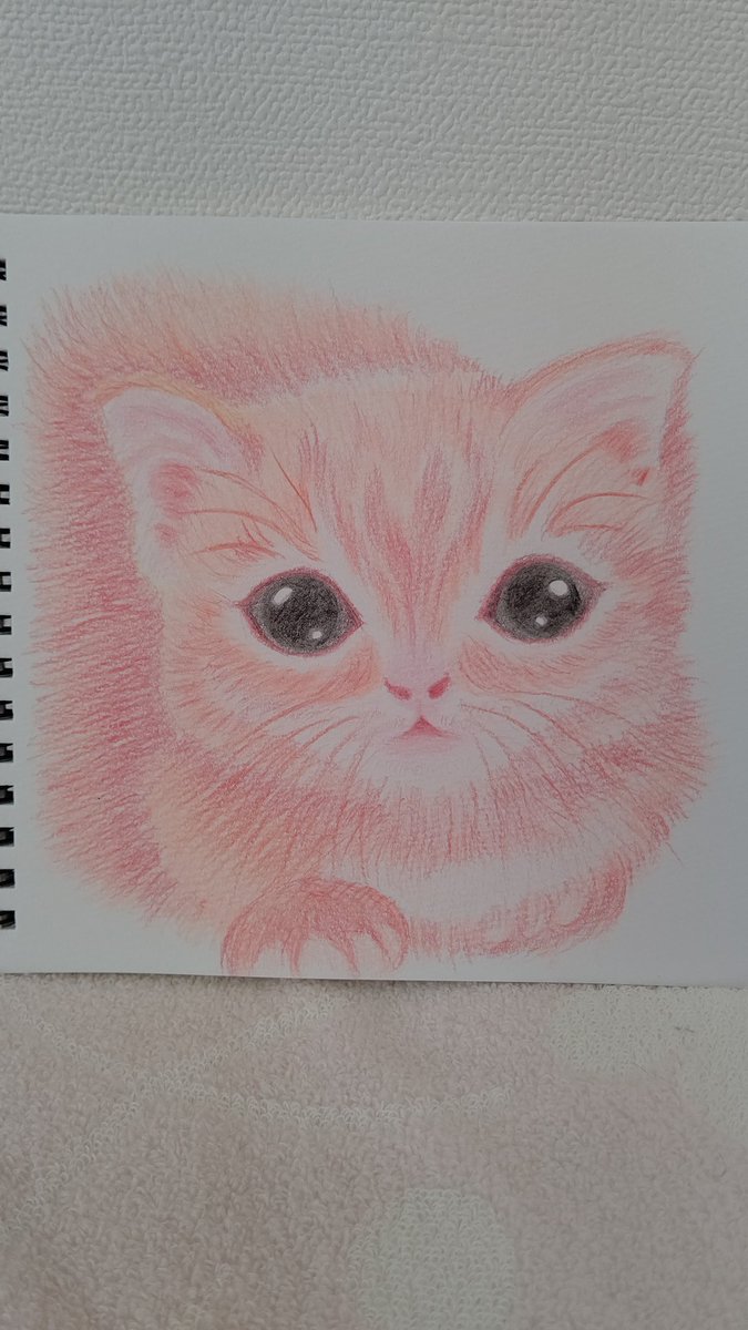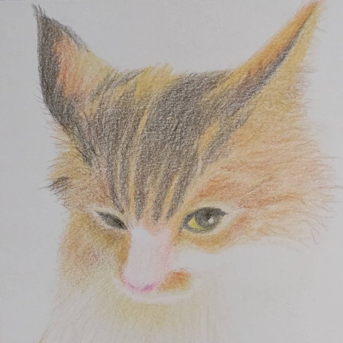 0 3 可愛い子猫の写真があったので描いてみました😊 #猫 #ねこ #子猫 #こねこ #もふもふ #イラスト #色鉛筆画 21/12/03 16:43