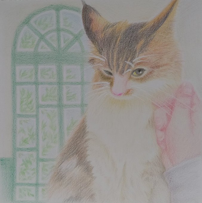 可愛い子猫の写真があったので描いてみました😊 #猫 #ねこ #子猫 #こねこ #もふもふ #イラスト #色鉛筆画