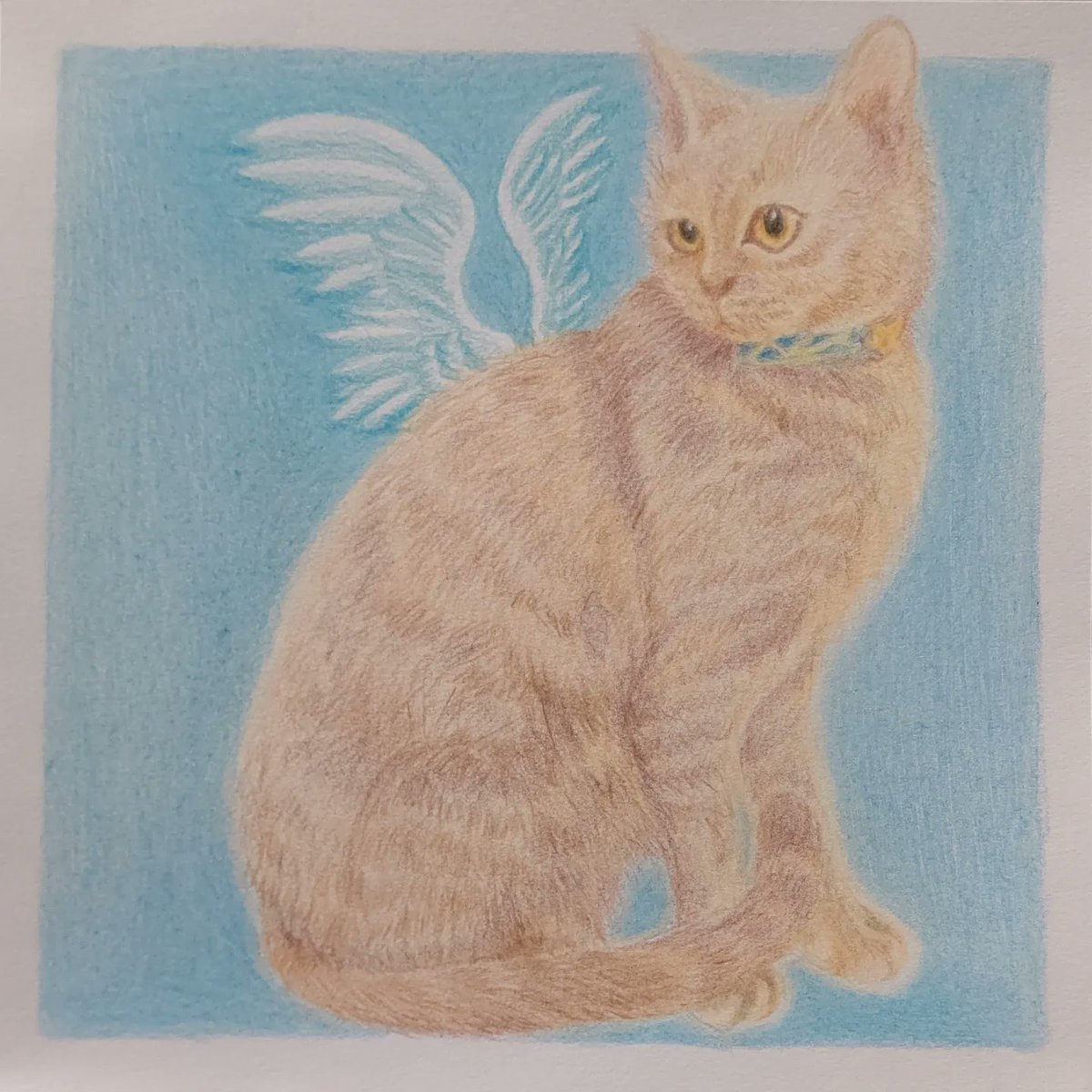 私の猫天使グリエル #猫 #ねこ #cat #天使 #angel #もふもふ #イラスト #色鉛筆画 #猫好きさんと繋がりたい #イラスト好きな人と繋がりたい