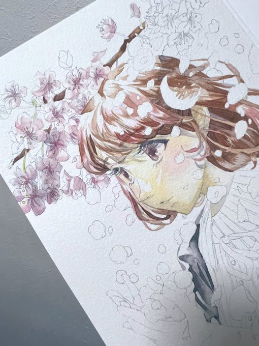 0 2 満開の桜に合わせて完成させたかったのですが、間に合わなそうなので途中経過を。 #イラスト #アナログ絵 #透明水彩 23/03/26 19:46