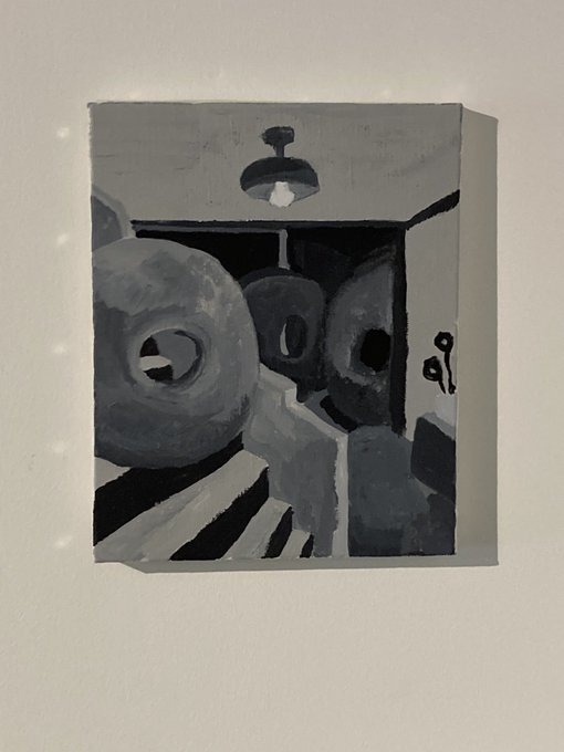 8 54 アクリルで描きました 引きこもりのドーナツが家庭訪問を嫌がっている絵です 23/07/07 17:54