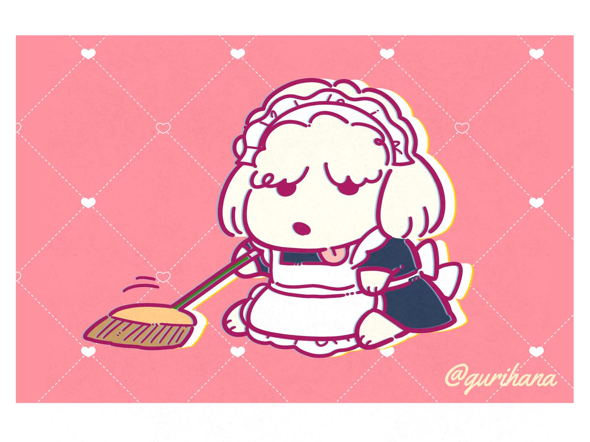 自宅以外の掃除は好きな犬ちゃんを描きました! #メイドの日