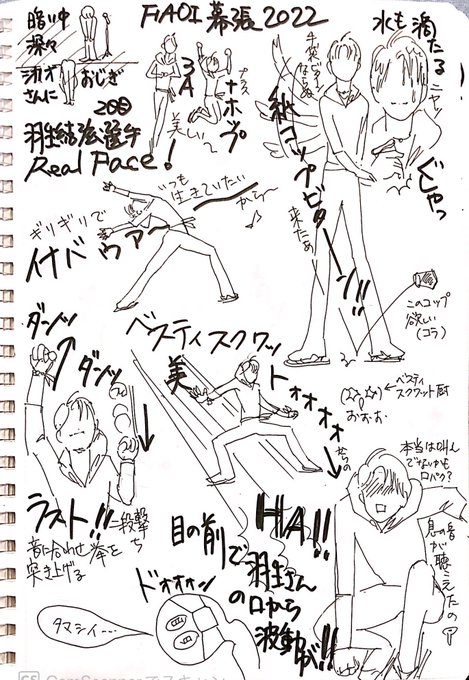 遅くなりましたゼイゼイ(;´Д`) #FaOI2022幕張 ② #羽生結弦 選手 #RealFace 2日目は端とはいえショート席。水被る側でしかもベスティスクワットの終着点辺りだったので衝撃で記憶が飛ぶのを必死に思い出して描きましたw昨日より更にキレキレの演技!音ハメも見事でした! #YuzuruHanyu𓃵