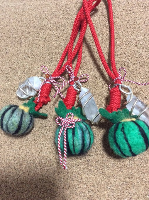 お絵かきではなく作業してしまった スイカ!! #羊毛フェルト #羊毛クリエイター #ぐるぐる本舗さくやこのはな #スイカ #天然石 #ハンドメイド