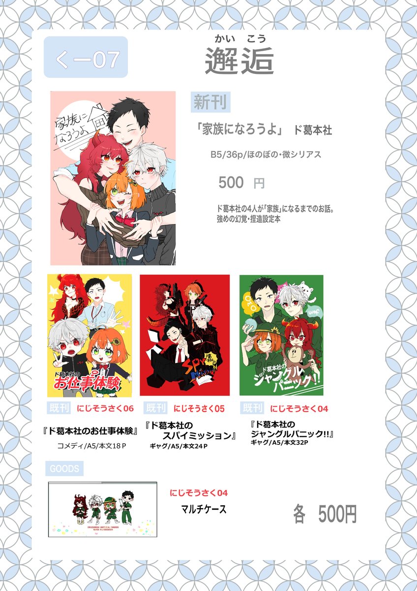 5 6 #にじそうさく07 のおしながきです! く-07 邂逅にてお待ちしております~!! 23/05/04 15:13