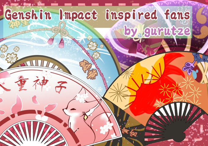 🌸RT please🌸 It's time to reveal my secret merch, Yae Miko inspired fans!!✨ I'll bring them to cons as a test, but I'm planning on putting them online and doing more Inazuma designs💕 #原神 #GenshinImpact