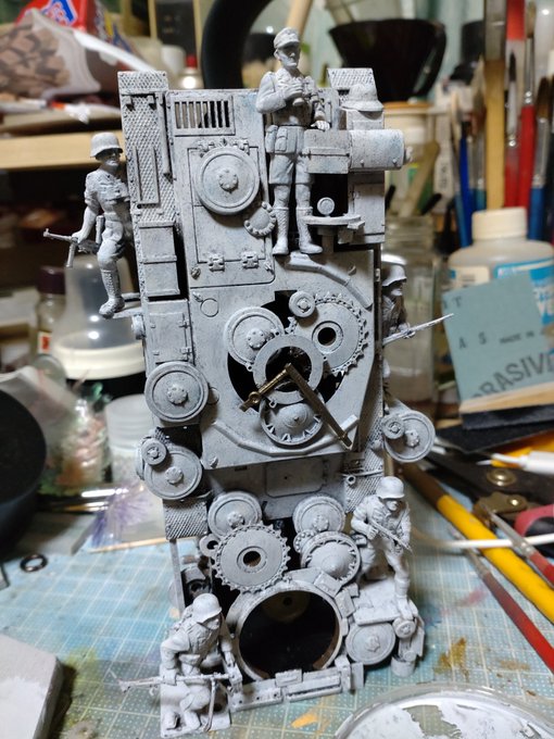 #今月作ったプラモ晒そうぜ #タミヤ 1/35Ⅱ号戦車組み替えて柱時計製作🤭 戦車組み替えても柱時計にしかならないけど付属の兵隊使うことによって表現を広げていく技法。アーティストのクリス・ククシに憧れを抱いて。