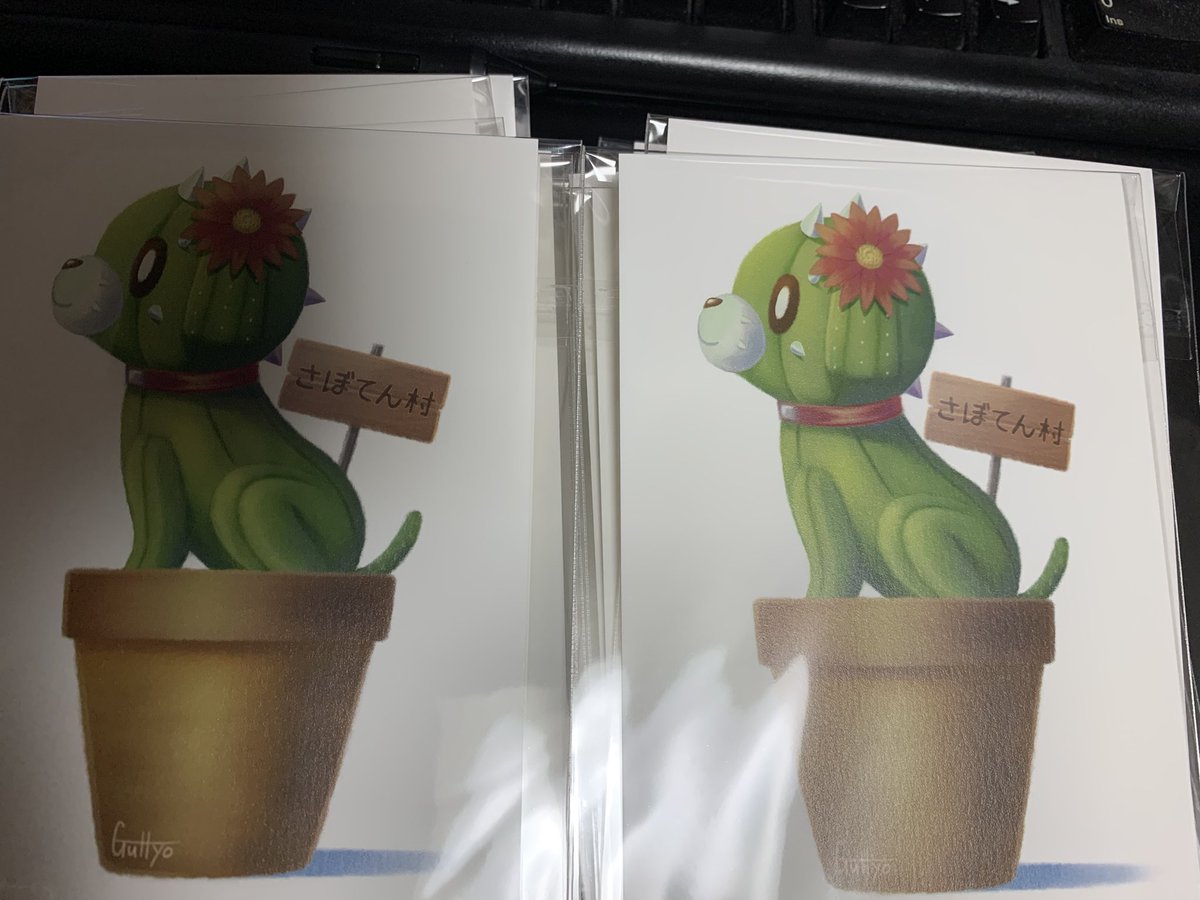 最終日に向けてポストカードを作ることになりました! 通常のとは別に自宅印刷で別バージョンも作ってみました。 こちらは直筆サイン入りです。 #さぼてん村イラスト展