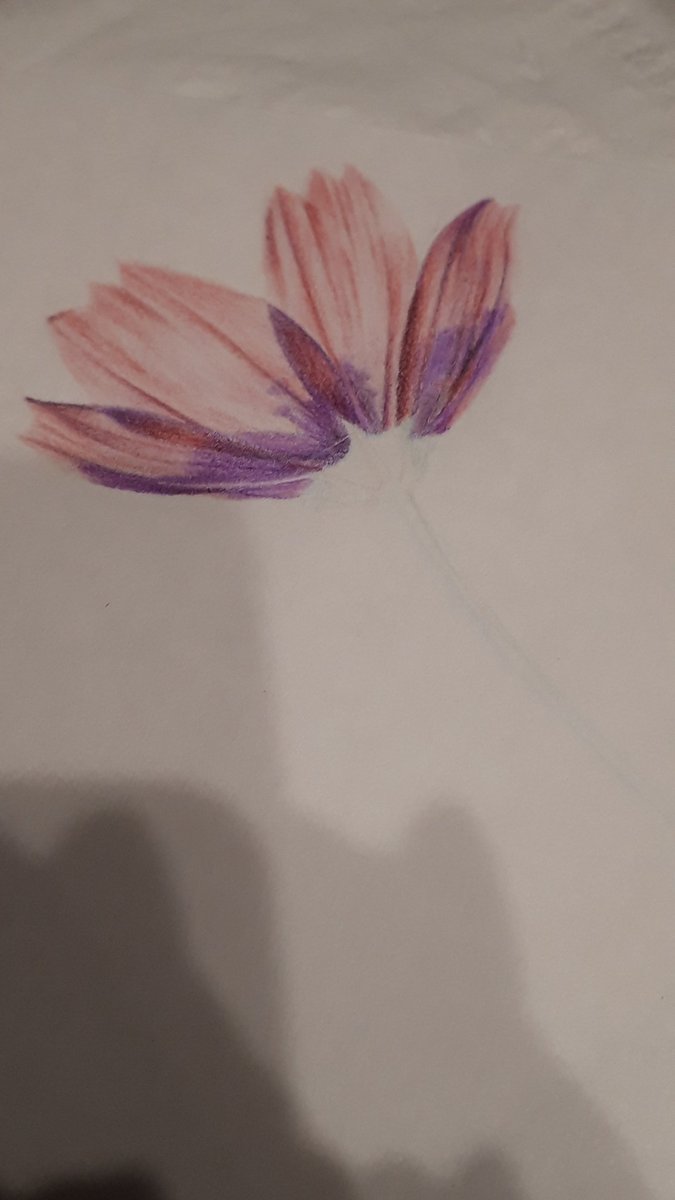 斜めからだとぺったんこになた 専用の紙じゃないから耐久性負けてこれ以上無理 何となく→色薄い→重ね塗り→エンドレス→…紙が悪いことにする 内側諦めるしかないので外側塗る #色鉛筆画