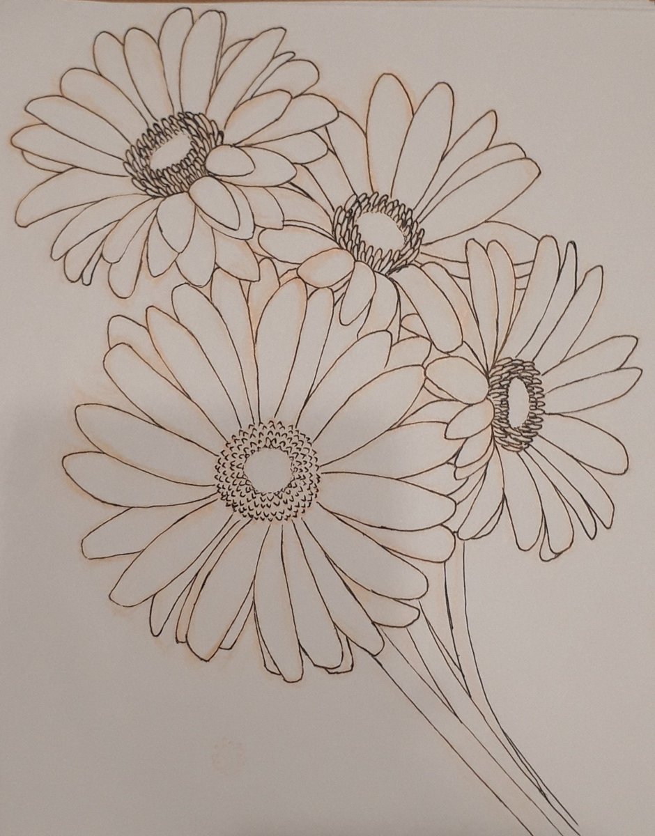 ガーベラ線画 中心部分細かいから丁寧に描きすぎて線濃くなった #お花 #イラスト